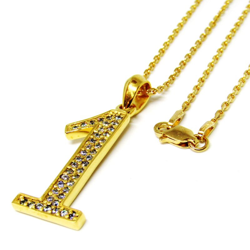 送料無料 Silver925 ナンバーネックレス No.1 18金コーティング チェーンサイズ 60cm キュービックジルコニア