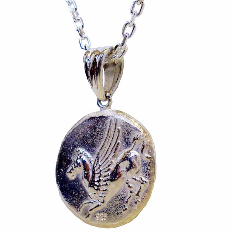 送料無料 シルバー925 コインネックレス 古代ギリシャ アンティークレプリカコイン コリントス スターテル銀貨 ペガサスコイン メンズ レディス ギフト