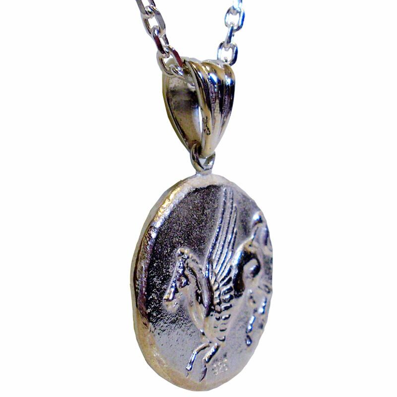 古代ギリシャで使用された コリントス銀貨を再現したシルバー925製コインネックレスです。