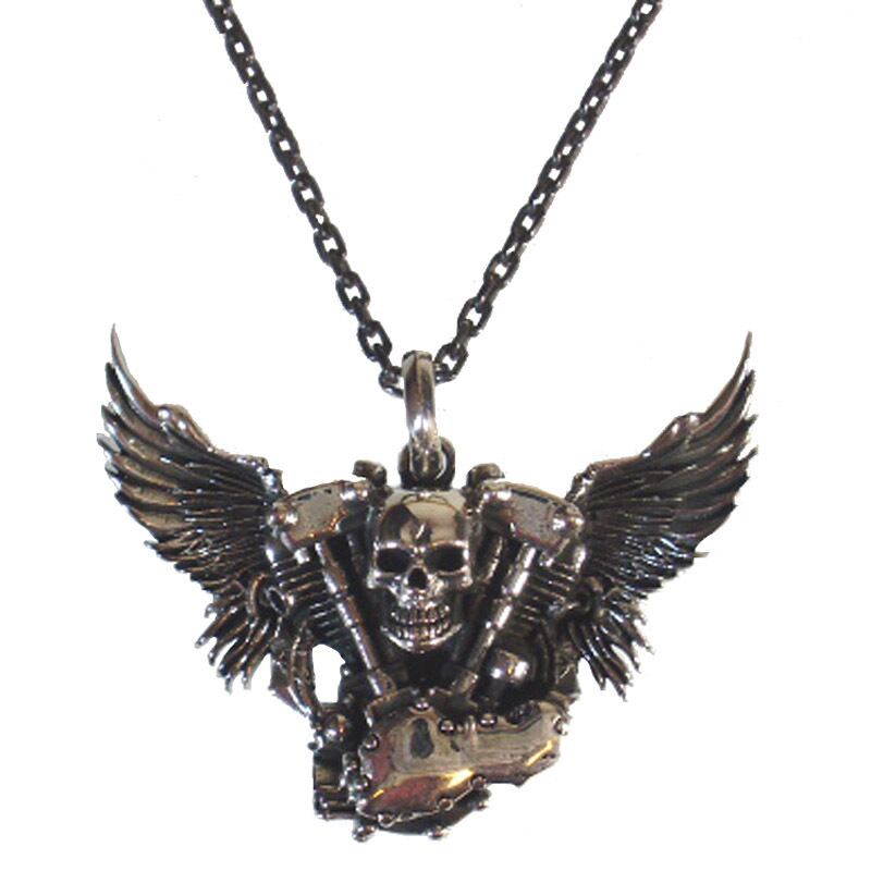 アメリカン大型バイク人気のエンジン ナックルヘッドをモチーフにウィングとスカルでアレンジしたアメリカンバイカーネックレス